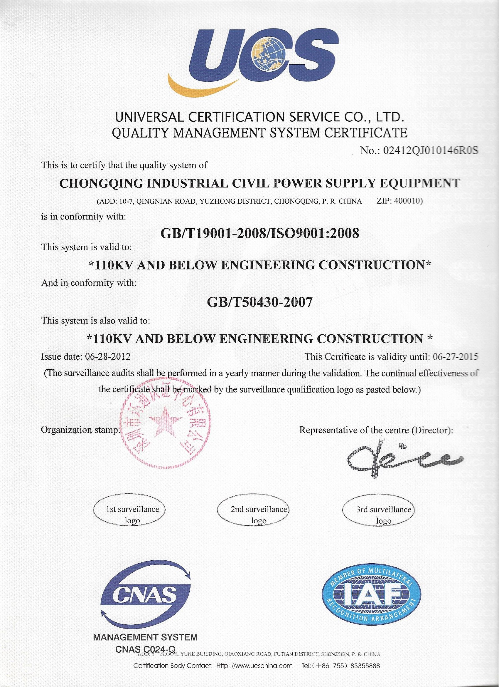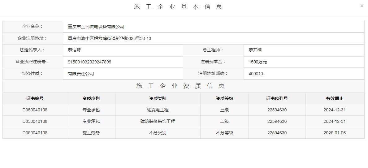 Chongqing Gongmin Power Supply Equipment Co., Ltd. was founded in 1986 with a registered capital of 15 million yuan. The company is mainly committed to urban power construction in Chongqing. It is a professional company specializing in the installation of transmission and transformation projects, sales of power equipment, technical consulting, after-sales service, and import and export business. After years of development, Gongmin Power Supply Equipment Co., Ltd. has become a leader in the same industry in Chongqing and has obtained the IS9001 quality management system. Joined as a member of the Board of Directors of the Electric Power Administration Office of Chongqing Electric Power Company, Vice President of the Construction Association of Yuzhong District, Chongqing, and a member of the Board of Directors of the Chongqing Foreign Trade Promotion Bureau. Since its establishment, Gongmin Company has been awarded the title of annual exemplary organization every year. Gongmin Company values contracts and keeps promises, and has a good professional reputation both inside and outside the industry.