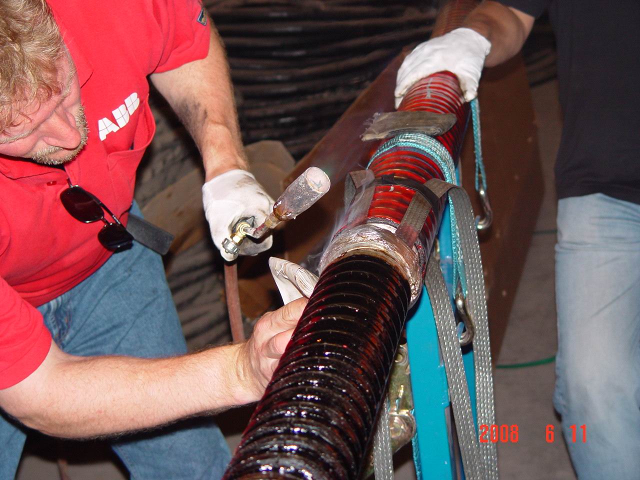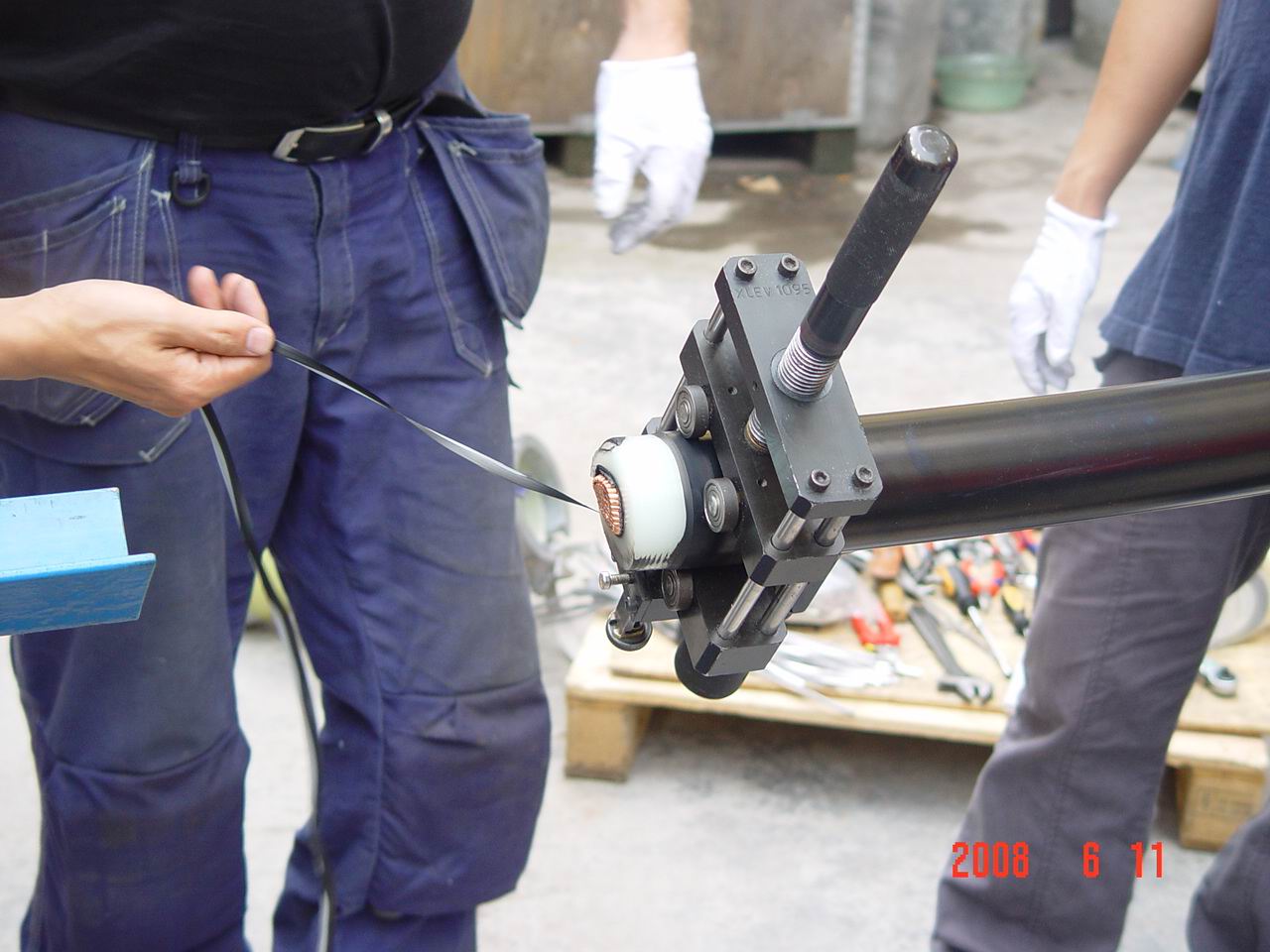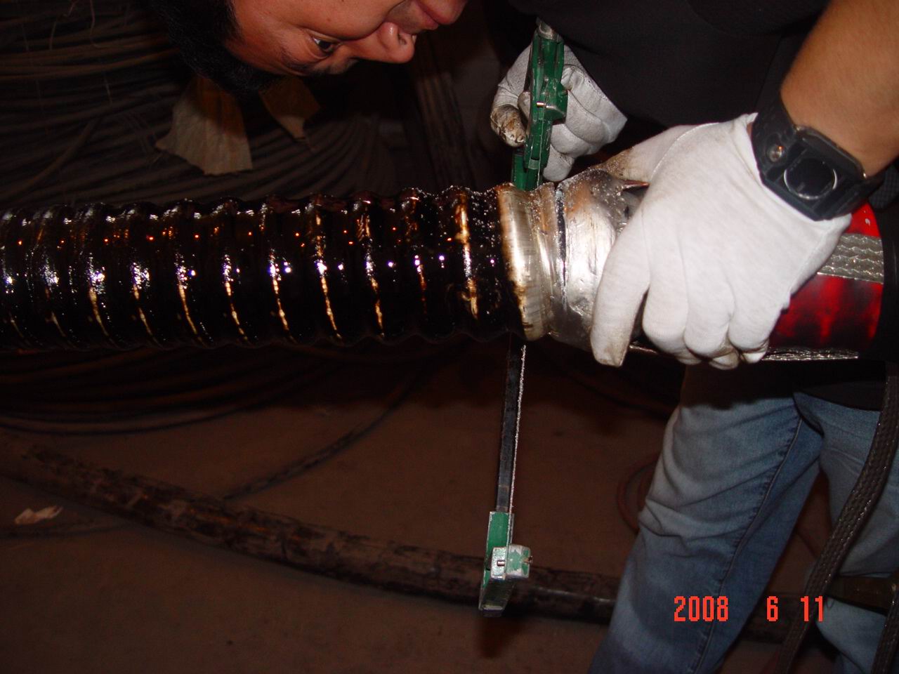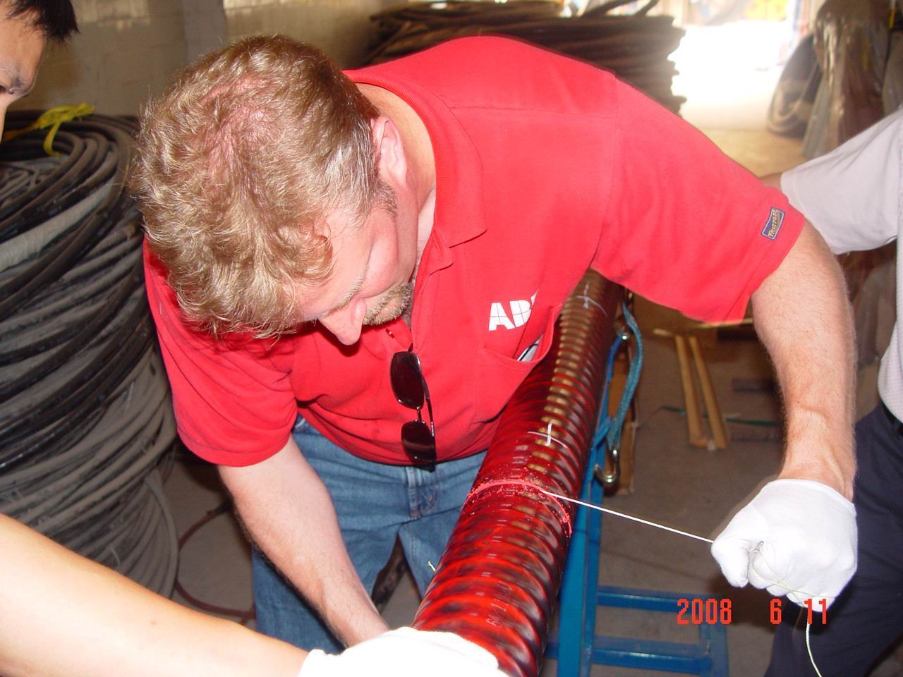 探討問題畫圖講解培訓(xùn)師示范如何用剝離進行打磨割開保護電纜的保護層用砂紙打磨半導(dǎo)電層用割離繩割電纜外層使用專業(yè)工具剝半導(dǎo)電層剝離電纜外層鍍錫 固定銅編帶割開保護電纜的保護層